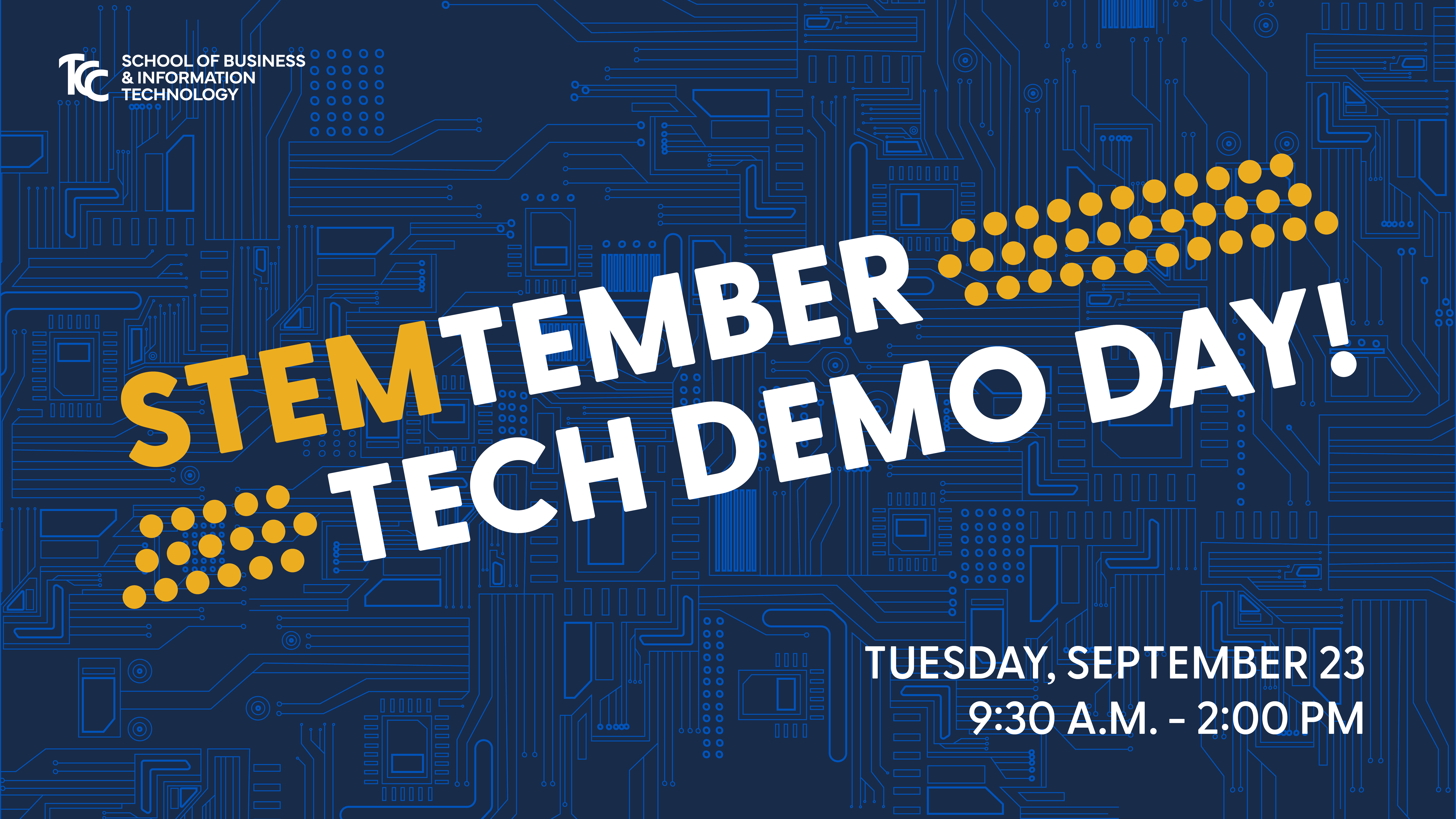 Stem-tember TCC Demo DayTuesday, September 23, 2025 at 10:00 AM until 2:00 PMCentral Daylight Time UTC -05:00Map and DirectionsTulsa Community College Southeast Campus10300 E 81st StTulsa, OK 74133United States TCC Southeast Campus - 10300 E 81st St, Tulsa OK, 74113🎯 Event Overview: Join the School of Business & IT for a Tech Demo Day and discover what TCC’s technology programs are all about!The day will feature:🚶♂️ Guided tour of the Southeast Campus🖥 Hands-on demonstrations in our Tech programs🍽 Complimentary lunch & information session on TCC and Tech career pathways🚌 Bus & Vehicle Routing· Buses: Enter through the Southeast Campus main entrance and follow signs to Building 2 (Student Success Center). Drop students off near front door of Building 2.Bus Parking: Lot 2Parent/Counselor Parking: Lots 1, 2, or 4Register Below:Registration is no longer available because the registration deadline has passed.